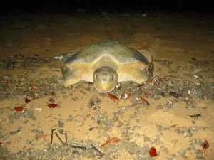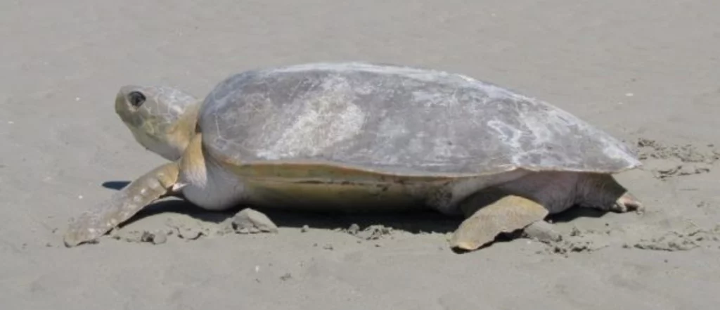 A female flatback turtle lays about 50 to 75 large eggs in a single nest. It then takes around 7 weeks for the hatchlings to emerge and make their way to the sea.